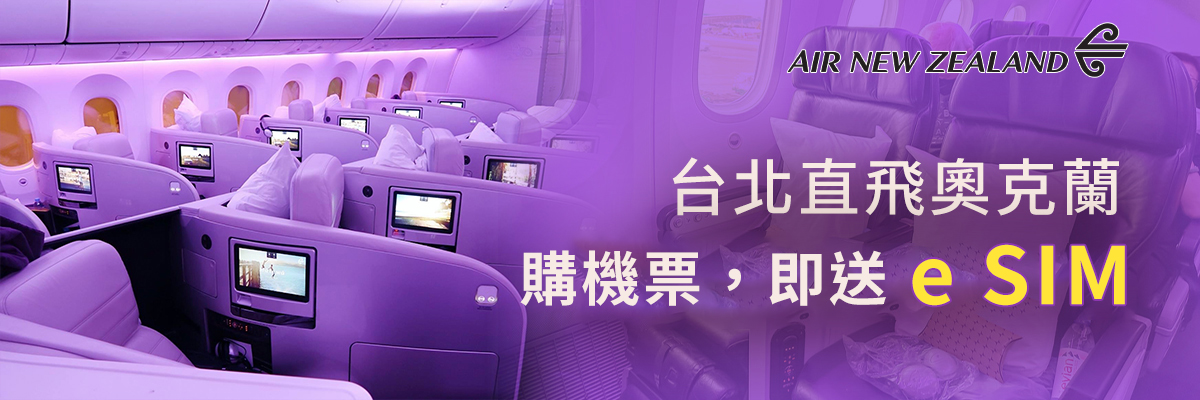 適用航班:台灣出發至紐西蘭之直飛航班 (NZ77/NZ78)。