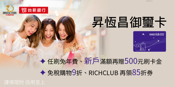 透過專屬連結申辦 台新昇恆昌御璽卡,新戶於30天內在 金龍永盛旅行社 消費滿NT$3,000,立即享 NT$500 回饋!