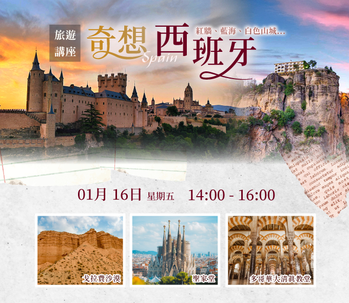 從高第的瘋狂建築到塞維亞的熱情街頭,這場講座將帶您一次解鎖西班牙最迷人的靈魂地圖。 現場專屬優惠,還有驚喜好禮等您抽!