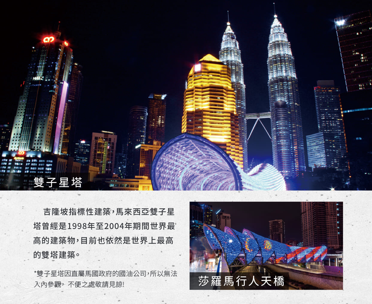 帶著愉快的心情集合於桃園國際機場,由專人辦理登機手續,隨後搭乘豪華客機飛往異國色彩濃郁的國度馬來西亞首府~吉隆坡。