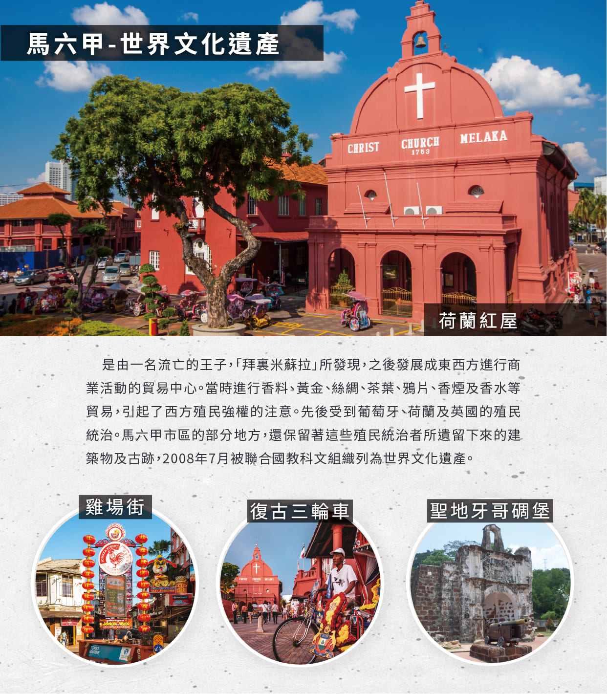 【麻六甲之旅(雞場古董街、荷蘭紅屋、大鐘樓、基督堂、古城堡、聖保羅教堂)】